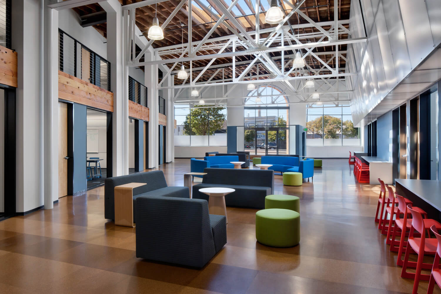 Description: Conversion of a 10,000 square foot warehouse to a college preparatory center including multi-purpose room, classrooms, kitchen, tutoring rooms, computer lab and offices. Project included the new construction of a 3,000 square foot mezzanine.